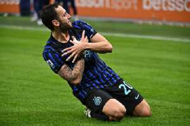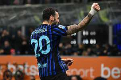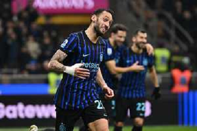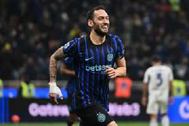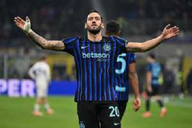 Inter vs Como nella foto Hakan Calhanoglu (Inter) esultanza dopo il gol del 3 a 0 Milano 06-12-2025 Stadio Giuseppe Meazza - San Siro Inter vs Como Campionato Serie A Enilive - 14a giornata foto Roberto Garavaglia/Agenzia Aldo Liverani sas