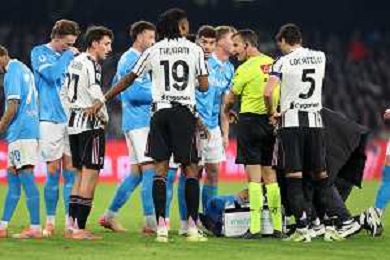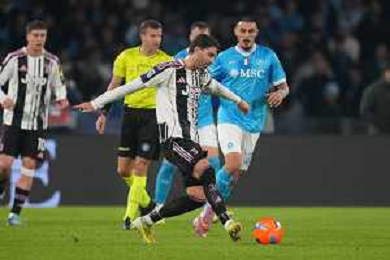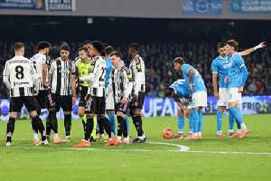 TVPM Napoli, Juventus Nella Foto: Giocatori Juve, arbitro La Penna Foto Mosca, Ag.Liverani -TVPM Napoli - Juventus Campionato Calcio Serie A 07.12.2025
