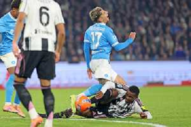 TVPM Napoli, Juventus Nella Foto: Noa Lang Pierre Kalulu Foto Mosca, Ag.Liverani -TVPM Napoli - Juventus Campionato Calcio Serie A 07.12.2025