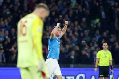 TVPM Napoli, Juventus Nella Foto: gol Rasmus Hojlund Foto Mosca, Ag.Liverani -TVPM Napoli - Juventus Campionato Calcio Serie A 07.12.2025