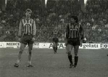 NEG-31-12-1988 LECCE- CAMPIONATO DI CALCIO SERIE A LECCE-INTER 0-3 NELLA FOTO ROBERTO MIGGIANO E RAMON DIAZ AG ALDO LIVERANI SAS