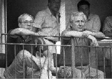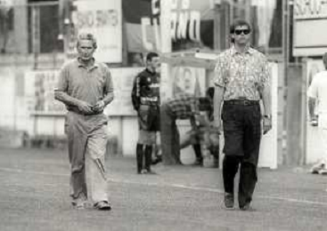 NEG-1991 LEFFE- PARTITA AMICHEVOLE LEFFE-ATALANTA NELLA FOTO ANTONIO PERCASSI PRESIDENTE ATALANTA CALCIO E E IL DIRETTORE SPORTIVO GIORGIO VITALI AG ALDO LIVERANI SAS