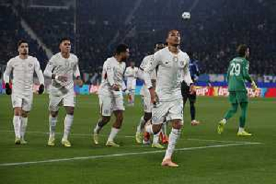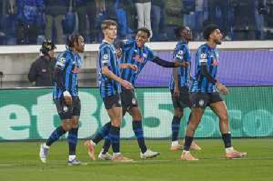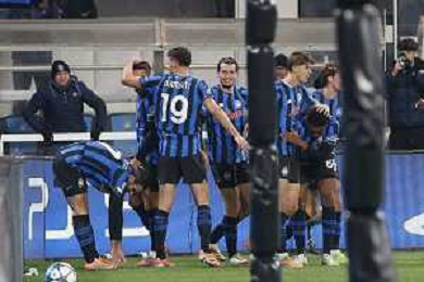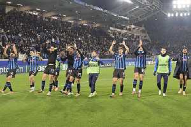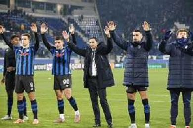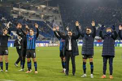 Atalanta players celebrate the victory at the end of Atalanta BC vs Chelsea FC, Champions League 2025-26 League phase, Matchday 6°, game at New Balance Arena in Bergamo (BG), Italy, on Dicember 09, 2025. (Photo by Davide Casentini)- AGENZIA ALDO LIVERANI SAS