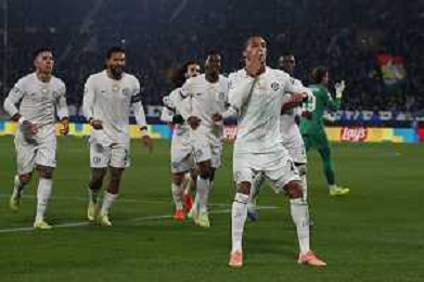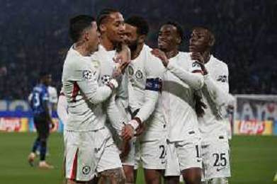 Joao Pedro of Chelsea FC celebrates with team during Atalanta BC vs Chelsea FC, Champions League 2025-26 League phase, Matchday 6°, game at New Balance Arena in Bergamo (BG), Italy, on Dicember 09, 2025. (Photo by Davide Casentini)- AGENZIA ALDO LIVERANI SAS
