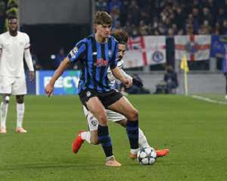 Raul Bellanova of Atalanta BC play the ball during Atalanta BC vs Chelsea FC, Champions League 2025-26 League phase, Matchday 6°, game at New Balance Arena in Bergamo (BG), Italy, on Dicember 09, 2025. (Photo by Davide Casentini)- AGENZIA ALDO LIVERANI SAS