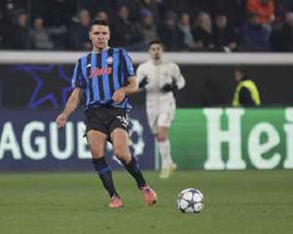 Berat Djimsiti of Atalanta BC play the ball during Atalanta BC vs Chelsea FC, Champions League 2025-26 League phase, Matchday 6°, game at New Balance Arena in Bergamo (BG), Italy, on Dicember 09, 2025. (Photo by Davide Casentini)- AGENZIA ALDO LIVERANI SAS