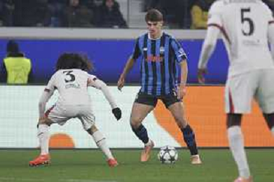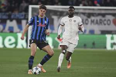 Odilon Kossounou of Atalanta BC play the ball during Atalanta BC vs Chelsea FC, Champions League 2025-26 League phase, Matchday 6°, game at New Balance Arena in Bergamo (BG), Italy, on Dicember 09, 2025. (Photo by Davide Casentini)- AGENZIA ALDO LIVERANI SAS