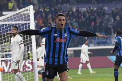 Charles De Ketelaere of Atalanta BC. celebrates after scoring during Atalanta BC vs Chelsea FC, Champions League 2025-26 League phase, Matchday 6°, game at New Balance Arena in Bergamo (BG), Italy, on Dicember 09, 2025. (Photo by Davide Casentini)- AGENZIA ALDO LIVERANI SAS