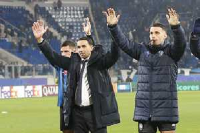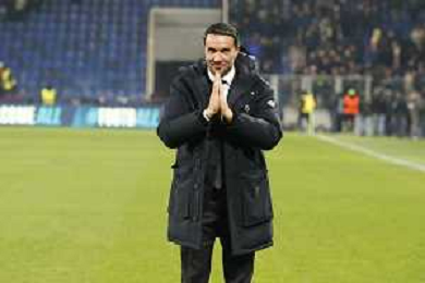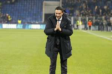 Raffaele Palladino Head Coach of Atalanta BC applaud the fans following the final whistle douring Atalanta BC vs Chelsea FC, Champions League 2025-26 League phase, Matchday 6°, game at New Balance Arena in Bergamo (BG), Italy, on Dicember 09, 2025. (Photo by Davide Casentini)- AGENZIA ALDO LIVERANI SAS
