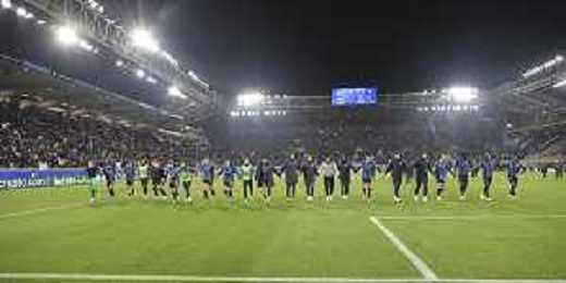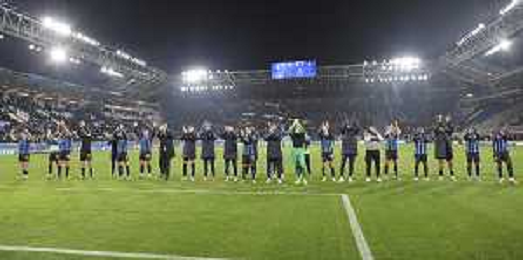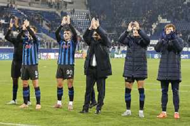 Atalanta players applaud the fans following the final whistle during Atalanta BC vs Chelsea FC, Champions League 2025-26 League phase, Matchday 6°, game at New Balance Arena in Bergamo (BG), Italy, on Dicember 09, 2025. (Photo by Davide Casentini)- AGENZIA ALDO LIVERANI SAS