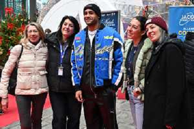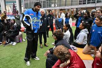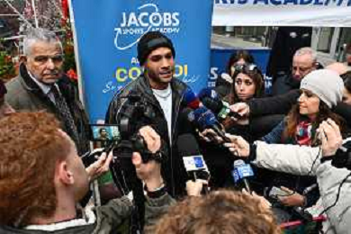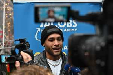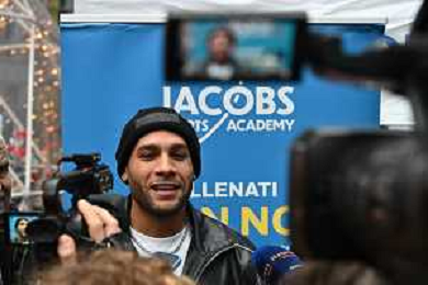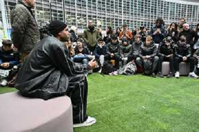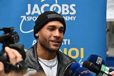 TVRG incontro Marcell Jacobs nella foto Marcell Jacobs Milano 10-12-2025 Il campipone olimpico Marcell Jacobs incontra e dialoga con alcuni studenti sotto il Palazzo della Regione, in piazza Città di Lombardia foto Roberto Garavaglia/Agenzia Aldo Liverani sas