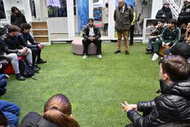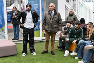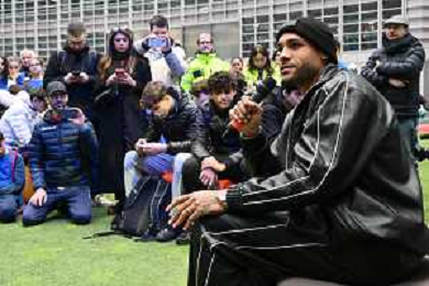 TVRG incontro Marcell Jacobs nella foto Federica Picchi Milano 10-12-2025 Il campipone olimpico Marcell Jacobs incontra e dialoga con alcuni studenti sotto il Palazzo della Regione, in piazza Città di Lombardia foto Roberto Garavaglia/Agenzia Aldo Liverani sas