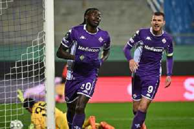 TVRG Fiorentina vs Dinamo Kiev nella foto Moise Kean (Fiorentina) segna il gol dell'1 a 0 Firenze 11-12-2025 Stadio Artemio Franchi Fiorentina vs Dinamo Kiev UEFA Conference League fase a girone unico - 5a giornata foto Roberto Garavaglia/Agenzia Aldo Liverani sas