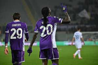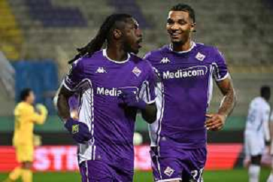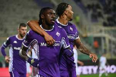 TVRG Fiorentina vs Dinamo Kiev nella foto Moise Kean (Fiorentina) e Cher Ndour (Fiorentina) esultanza dopo il gol dell'1 a 0 Firenze 11-12-2025 Stadio Artemio Franchi Fiorentina vs Dinamo Kiev UEFA Conference League fase a girone unico - 5a giornata foto Roberto Garavaglia/Agenzia Aldo Liverani sas