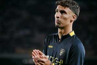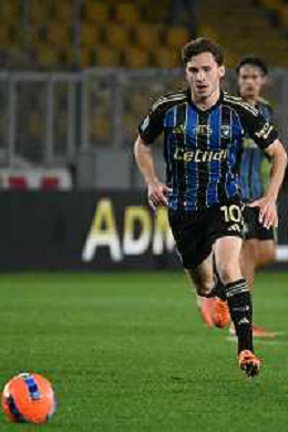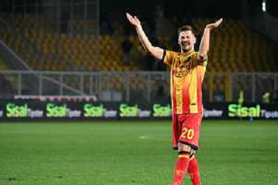 TVEM December 12, 2025 Lecce, Italy - US Lecce vs Pisa - Italian soccer serie A 2025/26 - Via Del Mare Stadium. In the pic: Michel Aebischer of Pisa greet the fans ©TVEM Emmanuele Mastrodonato - AGENZIA ALDO LIVERANI SAS