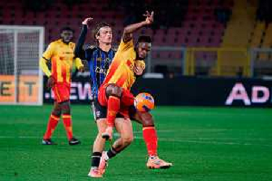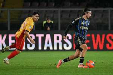 TVEM December 12, 2025 Lecce, Italy - US Lecce vs Pisa - Italian soccer serie A 2025/26 - Via Del Mare Stadium. In the pic: Riccardo Sottil of US Lecce in action against Arturo Calabresi of Pisa ©TVEM Emmanuele Mastrodonato - AGENZIA ALDO LIVERANI SAS