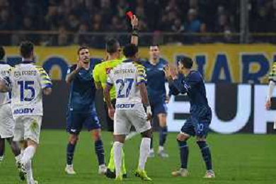 Parma vs Lazio Campionato Serie A Enilive - 15 Giornata Stadio Tardini - Parma 13-12-2025 nella foto arbitro Marchetti estrae il cartellino rosso per l’espulsione di mattia Zaccagni Foto Federico Gaetano - ag Aldo liverani ©Federico Gaetano - AGENZIA ALDO LIVERANI SAS