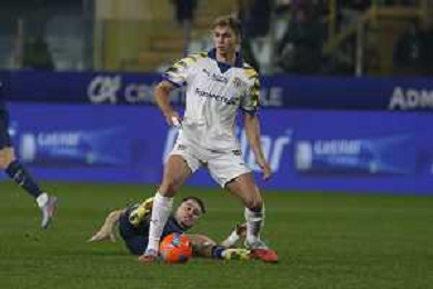 Sascha Britschgi of Parma AC play the ball during Parma Calcio vs SS Lazio, 15° Serie A Enilive 2025-26 game at Ennio Tardini in Parma (PR), Italy, on Dicember 13, 2025. (Photo by Davide Casentini)- AGENZIA ALDO LIVERANI SAS