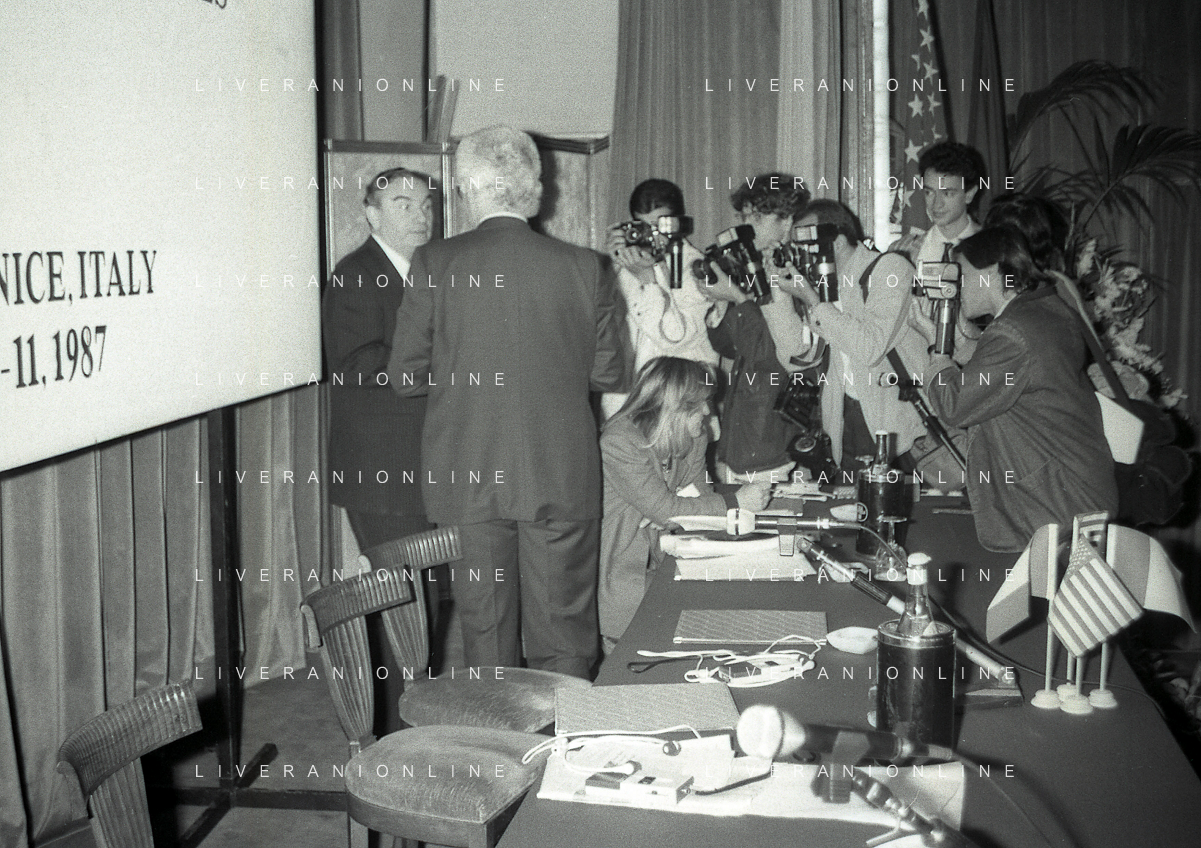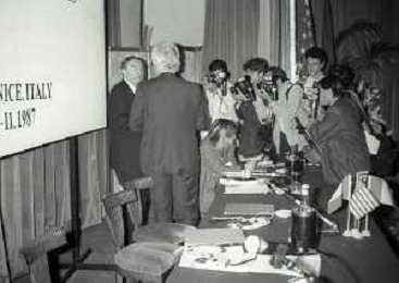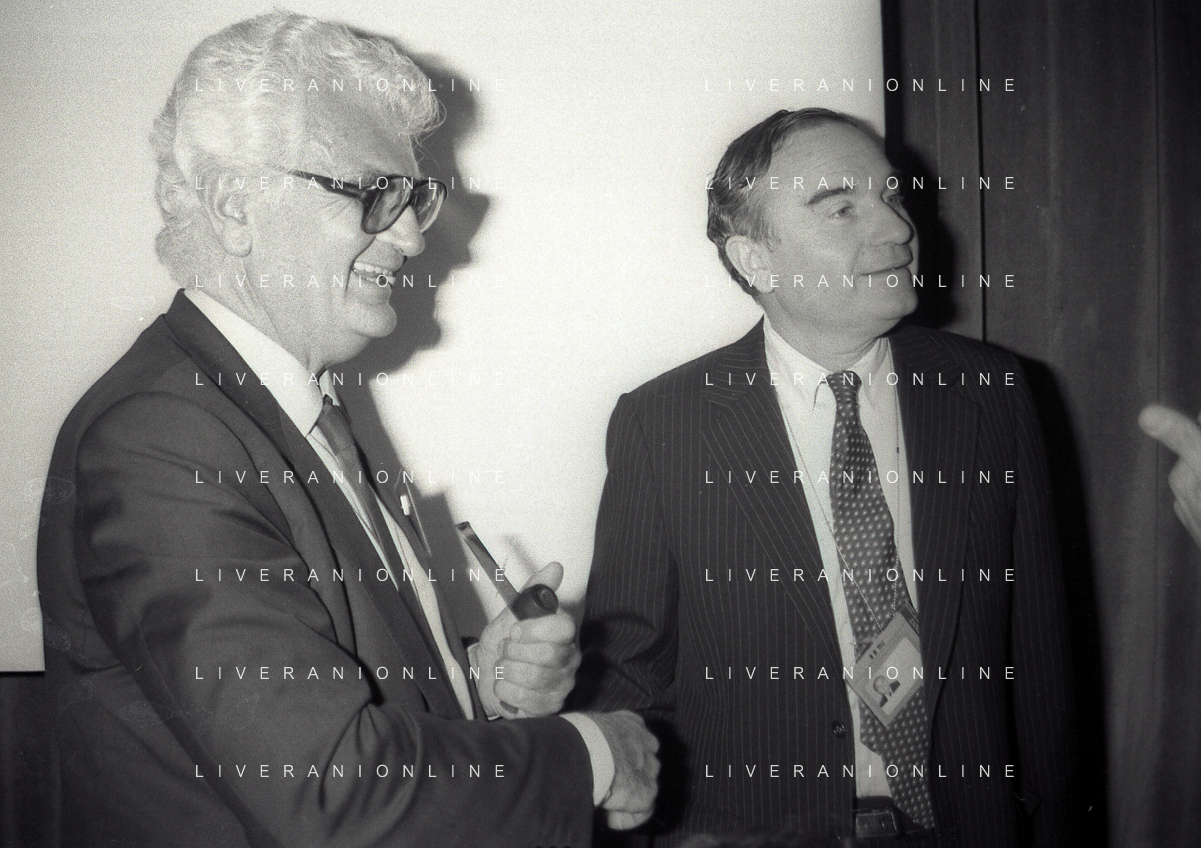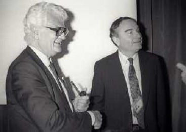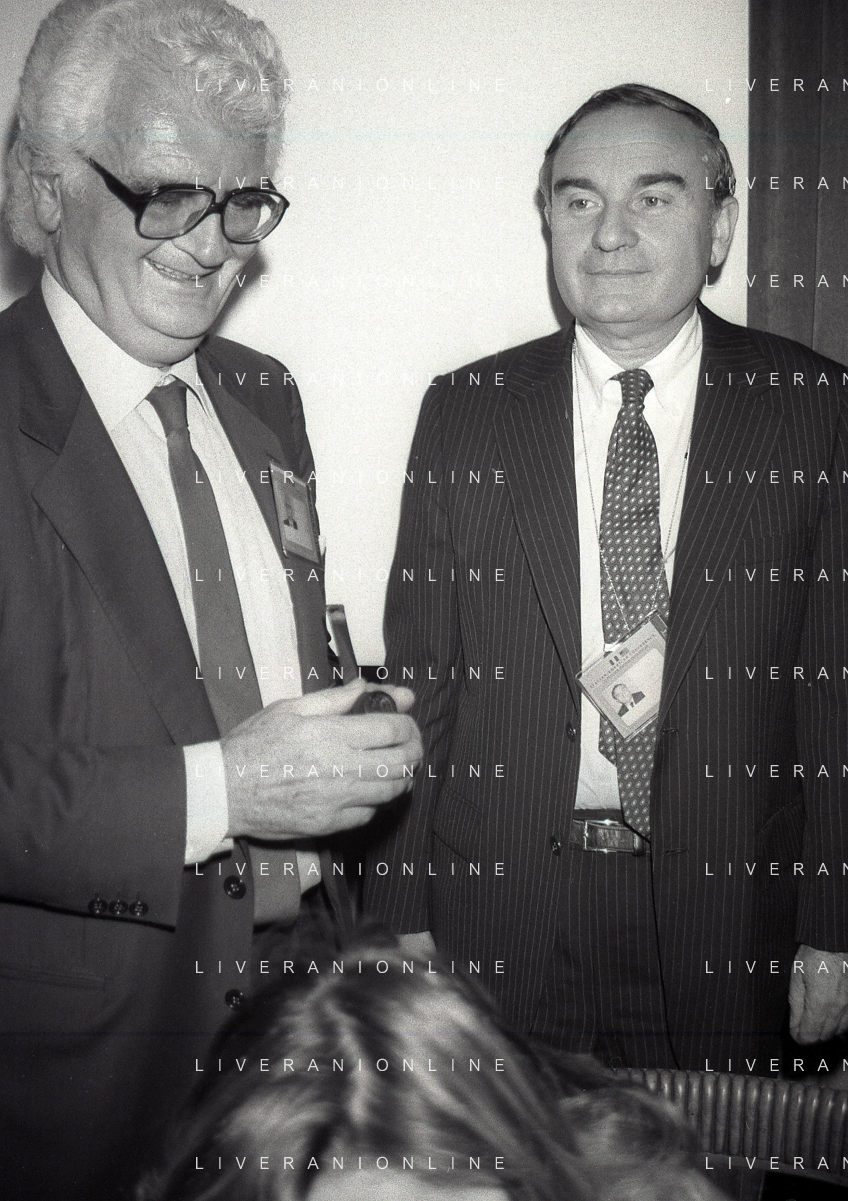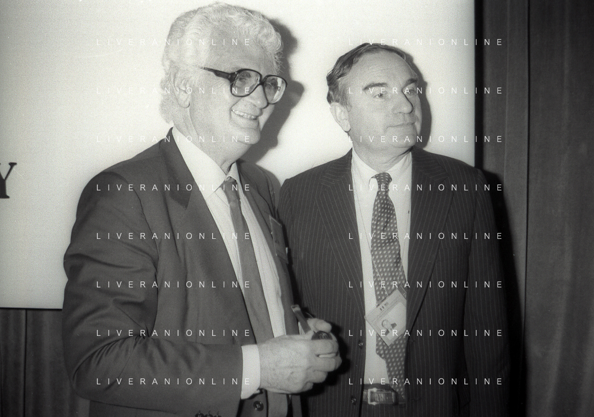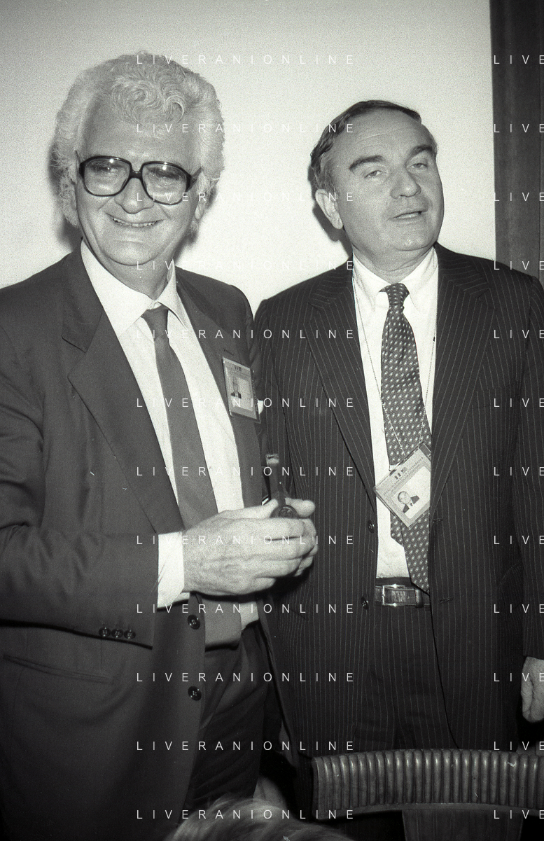 NEG-RETROSPETTIVA VICTOR UCKMAR GIURISTA TRIBUTARISTA NELLA FOTO VICTOR UCKMAR CON JOHN JOSEPH PHELAN PRESIDENTE DELLA BORSA DI NEW YORK A MILANO NELL'NNO 1987 AG ALDO LIVERANI SAS