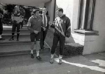 NEG-1992-1993 APPIANO GENTILE ALLENAMENTO ROMA CALCIO NELLA FOTO VUJADIN BOSKOV CON EMILIANO MASCETTI E PIERO BOSCHI AG ALDO LIVERANI SAS