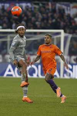 Dodò of ACF Fiorentina competes for the ball with Antoine Joseph Bernède of Hellas Verona FC during ACF Fiorentina vs Hellas Verona FC, 15° Serie A Enilive 2025-26 game at Artemio Franchi stadium in Firenze (FI), Italy, on Dicember 14, 2025. (Photo by Davide Casentini) AG ALDO LIVERANI SAS