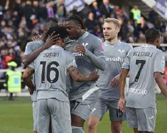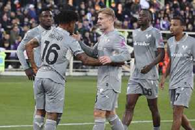 Gift Orban of Hellas Verona FC celebrates with team during ACF Fiorentina vs Hellas Verona FC, 15° Serie A Enilive 2025-26 game at Artemio Franchi stadium in Firenze (FI), Italy, on Dicember 14, 2025. (Photo by Davide Casentini) AG ALDO LIVERANI SAS