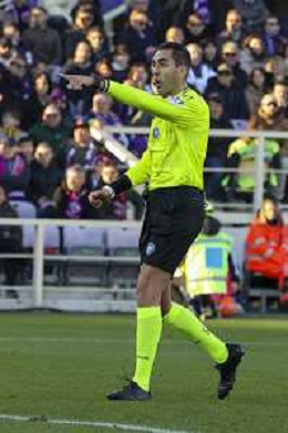 The Referee Andrea Colombo gestures during ACF Fiorentina vs Hellas Verona FC, 15° Serie A Enilive 2025-26 game at Artemio Franchi stadium in Firenze (FI), Italy, on Dicember 14, 2025. (Photo by Davide Casentini) AG ALDO LIVERANI SAS