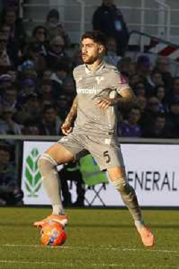 Marin Pongracic of ACF Fiorentina play the ball during ACF Fiorentina vs Hellas Verona FC, 15° Serie A Enilive 2025-26 game at Artemio Franchi stadium in Firenze (FI), Italy, on Dicember 14, 2025. (Photo by Davide Casentini) AG ALDO LIVERANI SAS