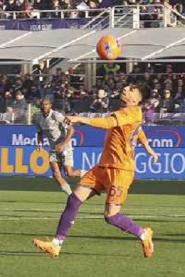 Albert Guomundsson of ACF Fiorentina play the ball during ACF Fiorentina vs Hellas Verona FC, 15° Serie A Enilive 2025-26 game at Artemio Franchi stadium in Firenze (FI), Italy, on Dicember 14, 2025. (Photo by Davide Casentini) AG ALDO LIVERANI SAS