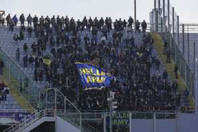 Hellas Veorna fans fans show their support before ACF Fiorentina vs Hellas Verona FC, 15° Serie A Enilive 2025-26 game at Artemio Franchi stadium in Firenze (FI), Italy, on Dicember 14, 2025. (Photo by Davide Casentini) AG ALDO LIVERANI SAS