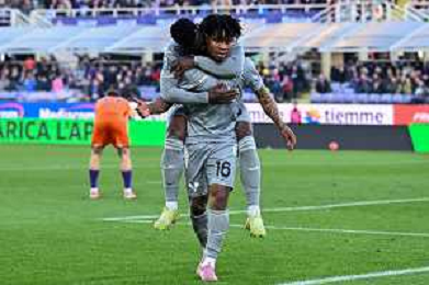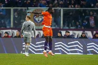 Gift Orban of Hellas Verona FC celebrates after scoring with team scoring the goal during ACF Fiorentina vs Hellas Verona FC, 15° Serie A Enilive 2025-26 game at Artemio Franchi stadium in Firenze (FI), Italy, on Dicember 14, 2025. (Photo by Davide Casentini)- AGENZIA ALDO LIVERANI SAS