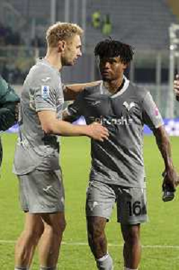 Gift Orban of Hellas Verona FC celebrates with team during ACF Fiorentina vs Hellas Verona FC, 15° Serie A Enilive 2025-26 game at Artemio Franchi stadium in Firenze (FI), Italy, on Dicember 14, 2025. (Photo by Davide Casentini) AG ALDO LIVERANI SAS