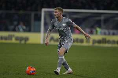 Antoine Joseph Bernède of Hellas Verona FC play the ball during ACF Fiorentina vs Hellas Verona FC, 15° Serie A Enilive 2025-26 game at Artemio Franchi stadium in Firenze (FI), Italy, on Dicember 14, 2025. (Photo by Davide Casentini) AG ALDO LIVERANI SAS