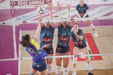 IMOLA 14 12 2025 CLAI IMOLA PALLAVOLO-CDA TALMASSONS 0-3 SERIE A2 NELLA FOTO DA DESTRA PUCK HOOGERS,KATERINA BULOVIC E FEDERICA BUSOLINI FOTO GIANNI SANNA-AG ALDO LIVERANI SAS
