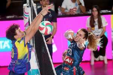 IMOLA 14 12 2025 CLAI IMOLA PALLAVOLO-CDA TALMASSONS 0-3 SERIE A2 NELLA FOTO DA SINISTRA FRANCESCA SCOLA TALMESSONS E FEDERICA BUSOLINI CLAI IMOLA FOTO GIANNI SANNA-AG ALDO LIVERANI SAS