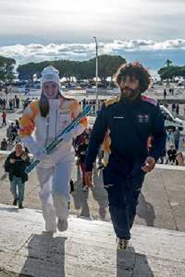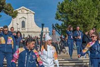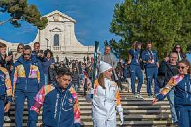 14-12-2025. Viaggio della fiamma olimpica delle olimpiadi invernali di Milano/Cortina 2026, per le vie di Cagliari, Sardegna, Italia. Foto Salvatore Moi/Agenzia Aldo Liverani s.as. Nella foto: Francesca Zucca Scalinate Basilica Nostra Signora Madonna di Bonaria Cagliari ©MOI SALVATORE - AGENZIA ALDO LIVERANI SAS