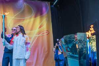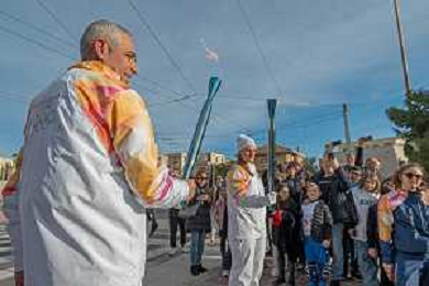 14-12-2025. Viaggio della fiamma olimpica delle olimpiadi invernali di Milano/Cortina 2026, per le vie di Cagliari, Sardegna, Italia. Foto Salvatore Moi/Agenzia Aldo Liverani s.as. Nella foto: Dalia Kaddari in via Roma Cagliari ©MOI SALVATORE - AGENZIA ALDO LIVERANI SAS