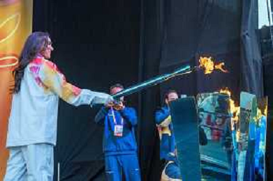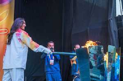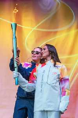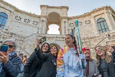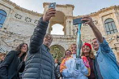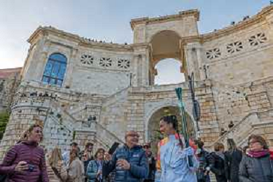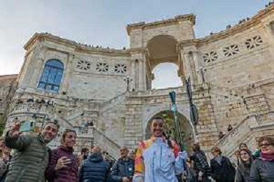 14-12-2025. Viaggio della fiamma olimpica delle olimpiadi invernali di Milano/Cortina 2026, per le vie di Cagliari, Sardegna, Italia. Foto Salvatore Moi/Agenzia Aldo Liverani s.as. Nella foto: Giulia Stagno davanti Bastione Saint Remy Cagliari ©MOI SALVATORE - AGENZIA ALDO LIVERANI SAS