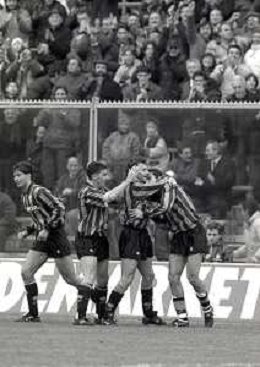 NEG-24-01-1993 BERGAMO CAMPIONATO DI CALCIO SERIE A ATALANTA-ANCONA 2-1 NELLA FOTO ABBRACCI DOPO GOAL ATALANTA AG ALDO LIVERANI SAS