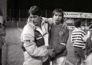 NEG-17-05-1989 NOVARA- PARTITA AMICHEVOLE ITALIA UNDER 21 SPAGNA UNDER 21 1-0 NELLA FOTO CESARE MALDINI CON FILIPPO GALLI AG ADO LIVERANI SAS