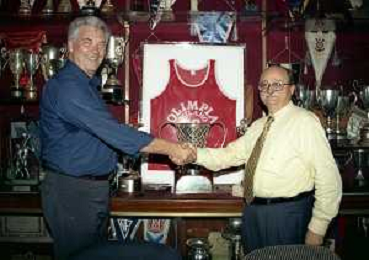 NEG COL-MILANO 06-08-1999 OLIMPIA BASKET MILANO PASSAGGIO DI PROPRIETA' TRA STEFANEL E PASQUALE CAPUTO NELLA FOTO TITO BERNA CON IL NUOVO PRESIDENTE E PROPRIETARIO PASQUALE CAPUTO AG ALDO LIVERANI SAS