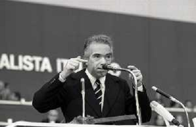NEG-RETROSPETTIVA LORIS FORTUNA POLITICO NELLA FOTO LORIS FORTUNA NELL'ANNO 1972 A GENOVA AL CONGRESSO DEL PARTITO SOCIALISTA ITALIANO CON BETTINO CRAXI AG ALDO LIVERANI SAS