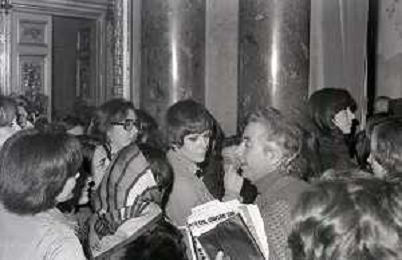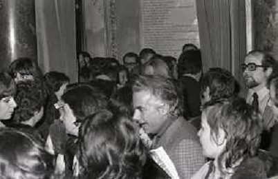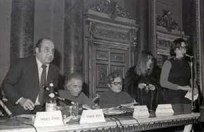 NEG-RETROSPETTIVA LORIS FORTUNA POLITICO NELLA FOTO GIOVANNI BOVIO NELL'ANNO 1975 A UNA CONFERENZA SULL'ABORTO AL CIRCOLO DELLA STAMPA AG ALDO LIVERANI SAS