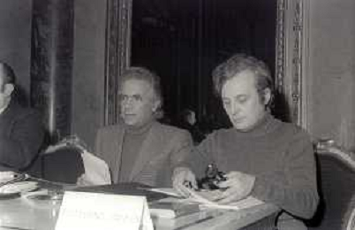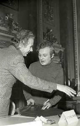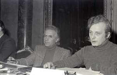 NEG-RETROSPETTIVA LORIS FORTUNA POLITICO NELLA FOTO LORIS FORTUNA CON FRANCO KRAINZ NELL'ANNO 1975 A UNA CONFERENZA SULL'ABORTO AL CIRCOLO DELLA STAMPA AG ALDO LIVERANI SAS