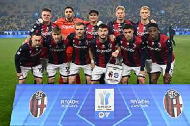 TVRG Bologna vs Inter nella foto formazione Bologna, in piedi da SX Emil Holm (Bologna), Federico Ravaglia (Bologna), Santiago Castro (Bologna), Torbjorn Heggem (Bologna) e Jens Odgaard (Bologna); in basso da SX Federico Bernardeschi (Bologna), Juan Miranda (Bologna), Tommaso Pobega (Bologna), Riccardo Orsolini (Bologna), Nikola Moro (Bologna) e Jhon Lucumi Bonilla (Bologna) Riyadh (KSA) 19-12-2025 Al-Awwal Park Stadium Bologna vs Inter Semifinale EA Sports Supercup - Supercoppa Italiana foto Roberto Garavaglia/Agenzia Aldo Liverani sas