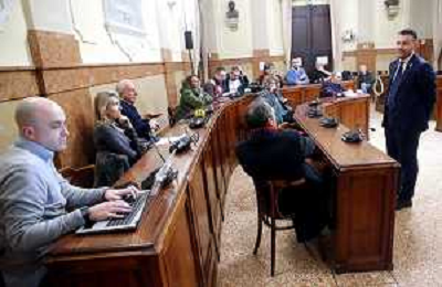 IMOLA 20 12 2025 conferenza stampa di fine anno del Sindaco Marco Panieri.NELLA FOTO SINDACO MARCO PANIERI CON I GIORNALISTI DURANTE LA CONFERENZA STAMPA ©SANNA - AGENZIA ALDO LIVERANI SAS