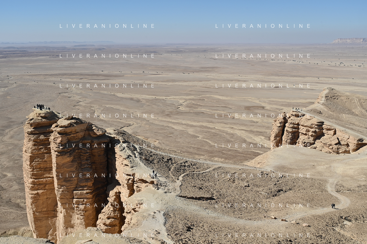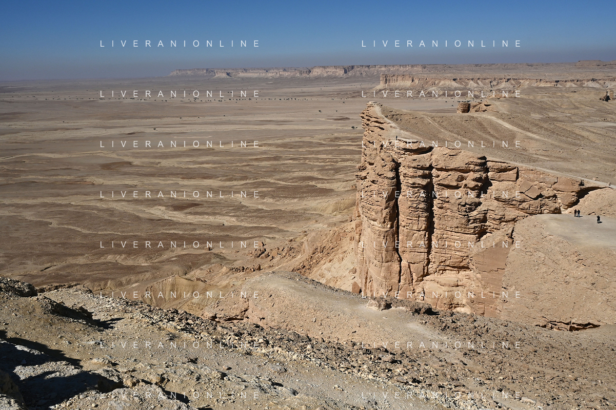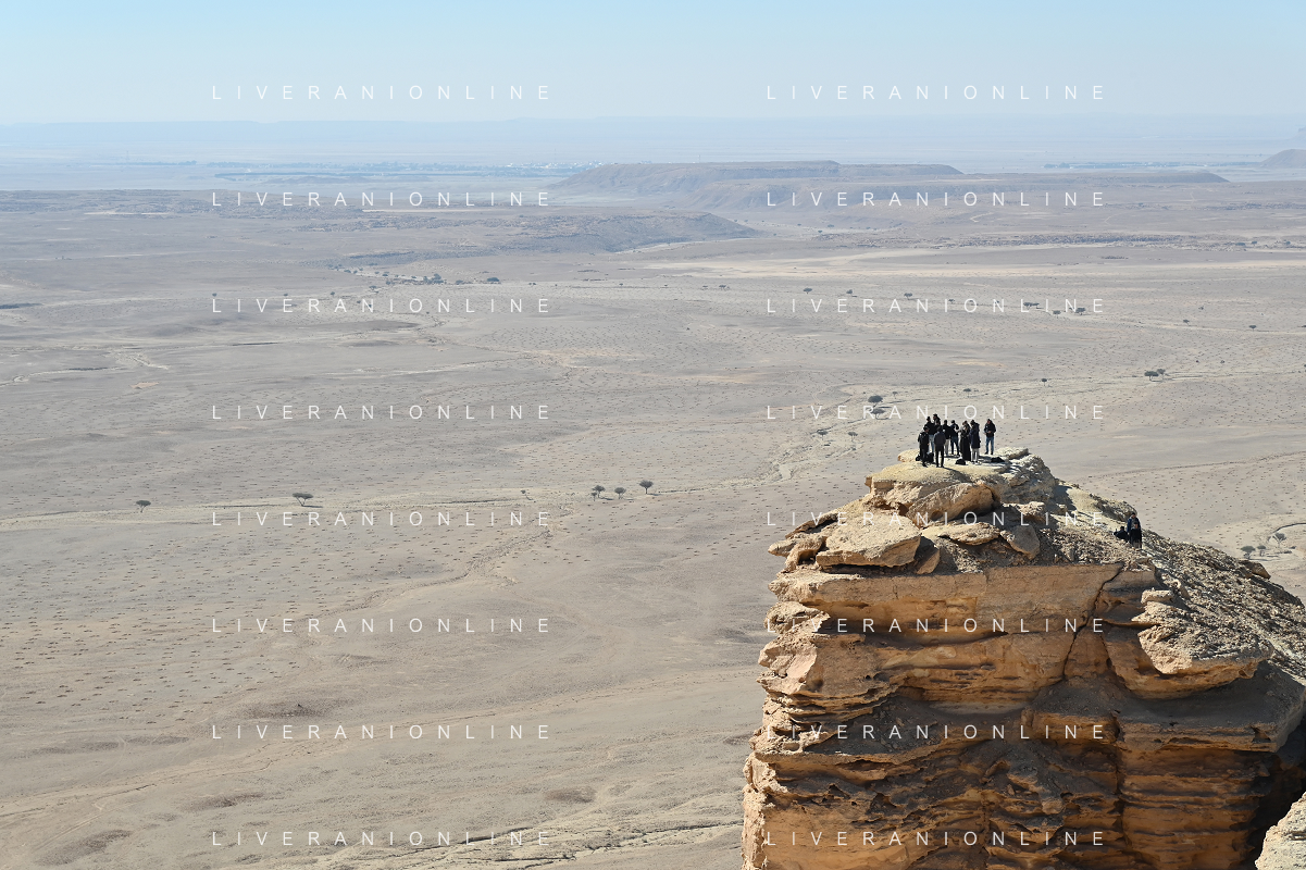 TVRG Edge of the World Arabia Riyadh (KSA) 20-12-2025 Il sito naturale chiamato Edge of the World, in arabo Jebel Fihrayn, una serie di pareti di roccia alte 300 metri all'estremità della catena montuosa di Tuwaik, nella zona a nord ovest del deserto intorno alla città di Riyadh in Arabia Saudita foto Roberto Garavaglia/Agenzia Aldo Liverani sa