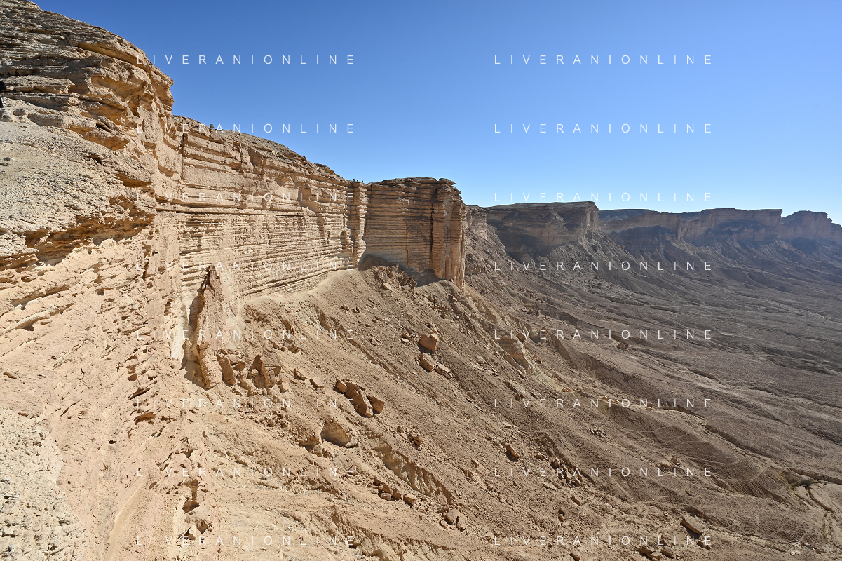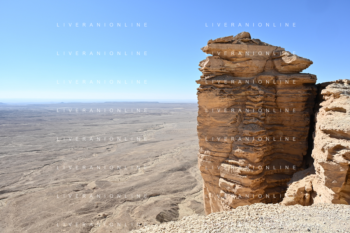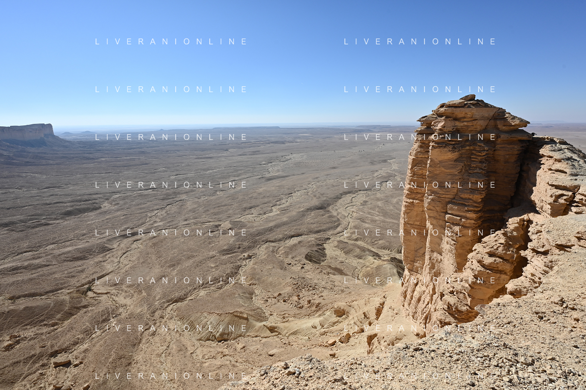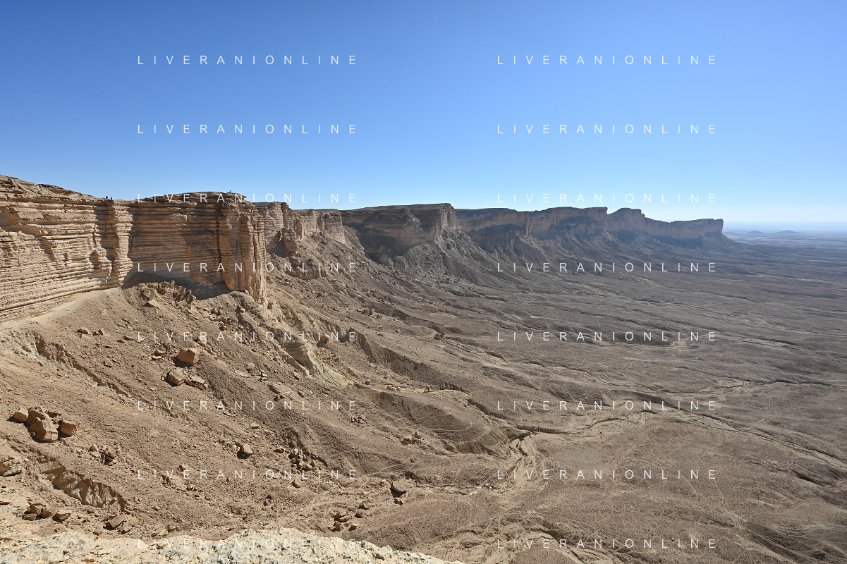 TVRG Edge of the World Arabia Riyadh (KSA) 20-12-2025 Il sito naturale chiamato Edge of the World, in arabo Jebel Fihrayn, una serie di pareti di roccia alte 300 metri all'estremità della catena montuosa di Tuwaik, nella zona a nord ovest del deserto intorno alla città di Riyadh in Arabia Saudita foto Roberto Garavaglia/Agenzia Aldo Liverani sa