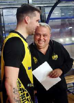 IMOLA 21 12 2025 VIRTUS IMOLA-NOCERA 73-60 SERIE B1 NELLA FOTO GIANLUIGI GALETTI ALLENATORE VIRTUS IMOLA CON EIMANTAS STANKEVICIUS VIRTUS IMOLA FOTO GIANNI SANNA-AG ALDO LIVERANI SAS
