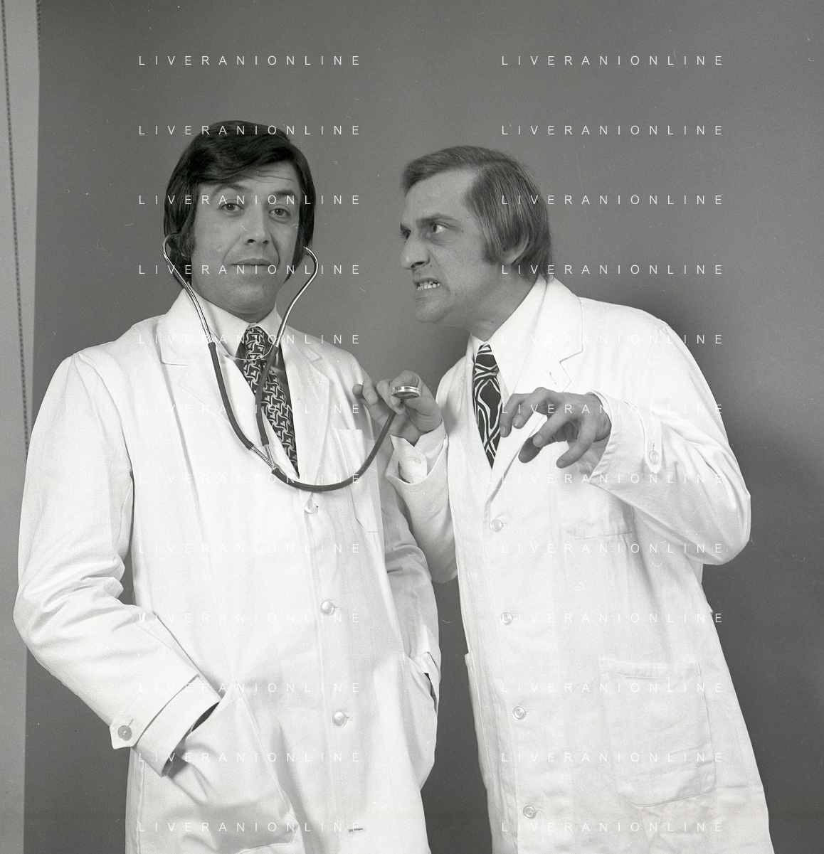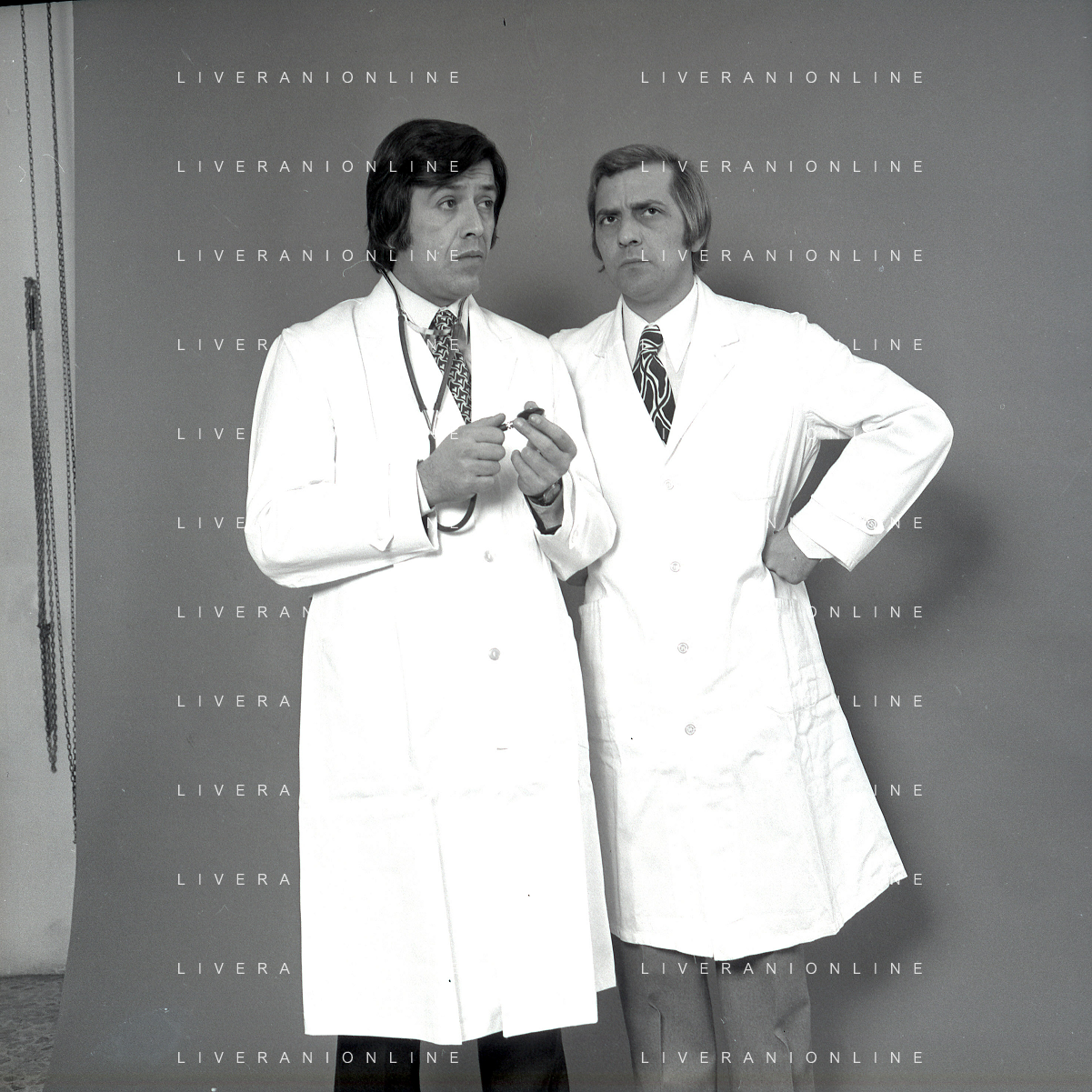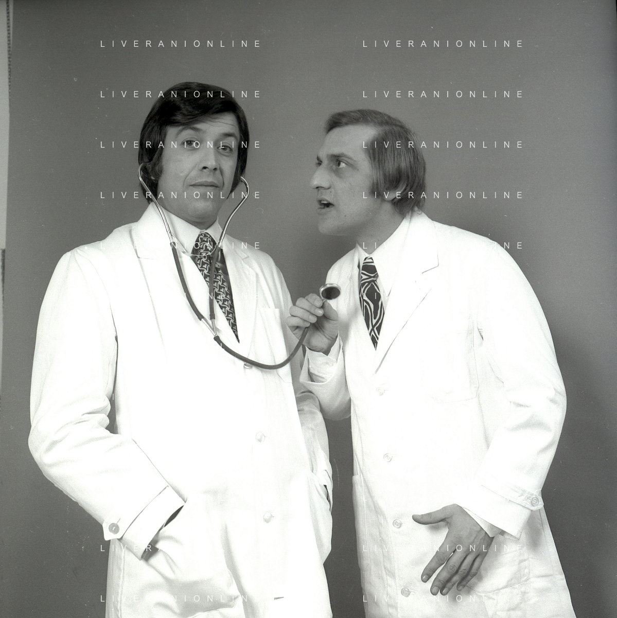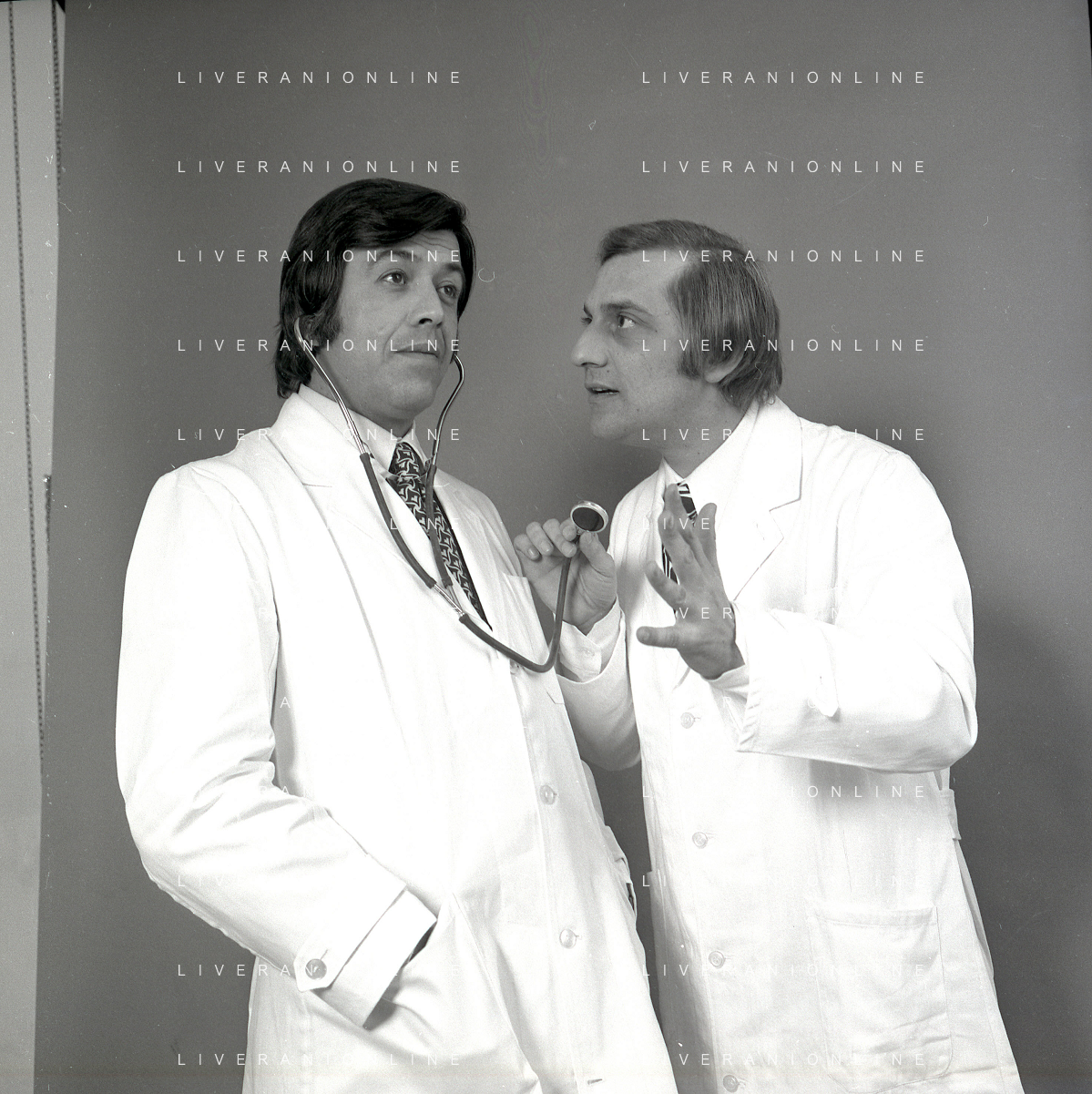 NEG-1972 RETROSPETTIVA RICCARDO MINIGGIO E GIAN FABIO BOSCO ATTORI NELLA FOTO RICCARDO MINIGGIO E GIAN FABIO BOSCO NELLA COMMEDIA TEATRALE “IL MEDICO DELLE DONNE “A MILANO NELL'ANNO 1972 AG ALDO LIVERANI SAS